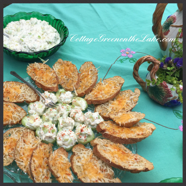 Parmesan & Cheddar Crostini with Chicken Salad Cucumber Bites