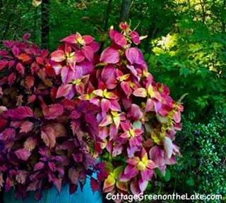 Short pumpkins, tall pumpkins, Cinderella’s and Baby Boo’s gathered beside more gorgeous Coleus.