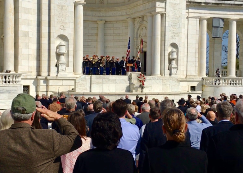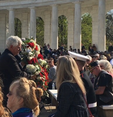 After lunch we met Bill Seaborn’s sister, Beverly who had flown in from Florida to come to the dedication. We picked Beverly up at the hotel where she was staying and she, Sherry, Richard and I rode to Arlington National Cemetery together, parked, then rode on trams to the amphitheater at the Cemetery.