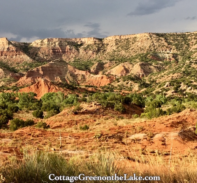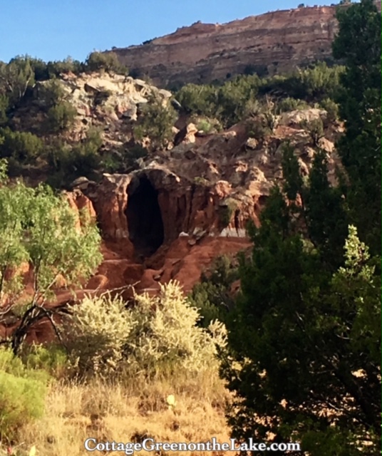 The next day we crossed over the border into Texas and stopped at Palo Duro Canyon, the “little Grand Canyon.” Oh my, it was spectacular and neither Richard and I had ever seen it before! One of the many things we loved about this grand sight was that we could drive our car all the way down to the base of the canyon to see all the landmarks, caves, and rock formations.
