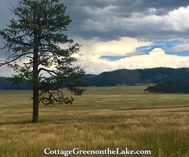 Hillsides were covered with groves of Blue Spruce and Junipers and “were home” to over 144,00 elk, the second largest elk population in New Mexico. Our brochure also told us that other residents of Valles Caldera included black bears, mountain lions, bobcats, foxes, golden eagles, wild turkeys, and prairie dogs. **ALSO … If you’ve ever watched the A&E Network series titled “LONGMIRE” … Valles Caldera is the location for a lot of the filming that takes place. We drove right up to “Sheriff Longmire’s cabin” that was originally built on this property back in 1917 – 1918.