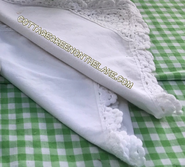 Yesterday it was such beautiful day here in Texas, I started day dreaming of picnic’s! Picnics with ruffly edged napkins, table linens, quaint dishes, and (usually my last consideration when “dreaming up” picnics) what picnic food to fix. With my daydream in mind, I went inside and opened our linen cabinet that’s filled with all kinds of vintage “lovely’s.”