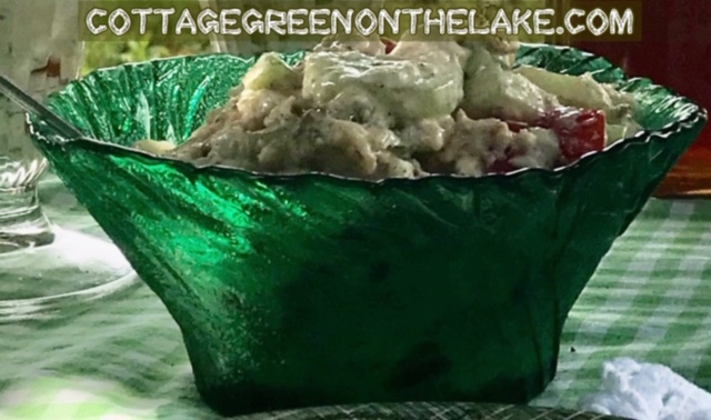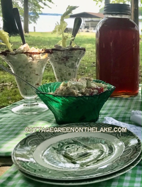 Since there were only 2 of us, I put the extra chicken salad into the green bowl with etched leaves.
