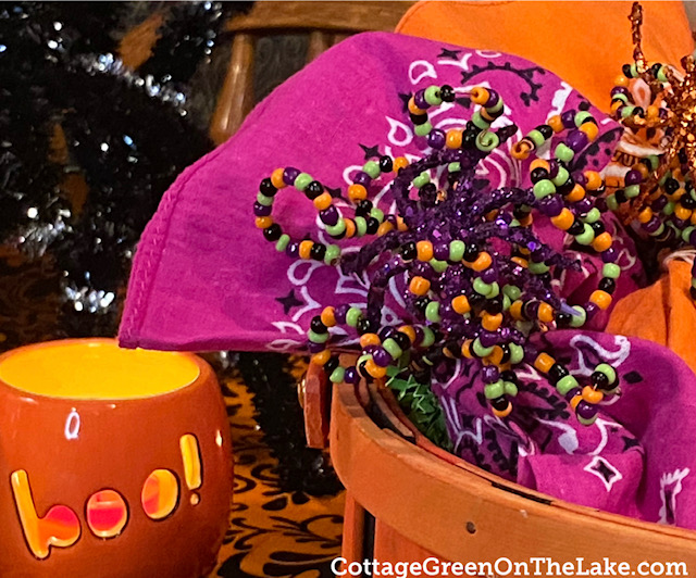 • plastic spider web basket with spiders (I found mine at Dollar Tree)