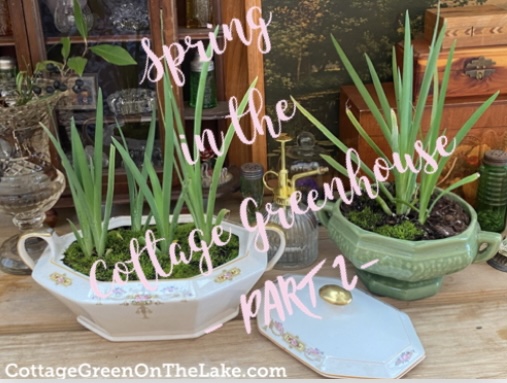 Part 2 of Spring in the Cottage Greenhouse is a DIY on how to create sweet arrangements using the spring flowers and plants that have