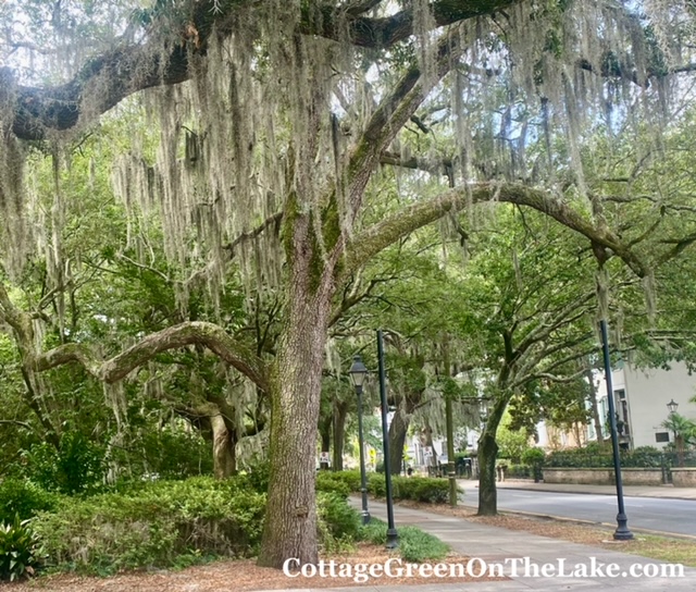 From Mississippi we drove to the Savannah, Georgia. Richard and I had never been to Savannah before and didn’t want to miss any of the historical places, so we booked a land and river cruise with Gray Line Tours. On the first part of the tour we rode a trolley to see the city and the picturesque town squares of Savannah. The town squares were shady under the branches of dramatic oak trees and were outlined with rows of azalea bushes…glimpses of walkways, water fountains, and bronze statues beckoned through the wispy curtains of moss that hung from the trees.