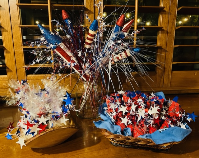 Our feathered friends seemed to be particularly hungry during this heat wave, or it was so hot they didn’t want to spend the energy foraging for food. Each day I made sure the hummingbird and bird feeders were filled, and the birdbath had fresh water, especially since we have a whole batch of Cardinals and all their cousins living in our backyard! The Momma and Papa Cardinals love building their nests in our holly bushes since the prickly leaves of the holly protect their babies from predators and berry snacks are within easy reach, right outside their nest! The other day we counted 15 cardinals flying into their homes in our holly bushes! All during the hot days of August we made sure to finish any outside chores before noon…spent lazy summer afternoons inside… and were thankful for air conditioning. It was so hot, even the locust stopped serenading us from the treetops and dinners were easy affairs with garden fresh tomatoes, black-eyed peas, crookneck squash, corn on the cob, and raspberry tea in abundance.