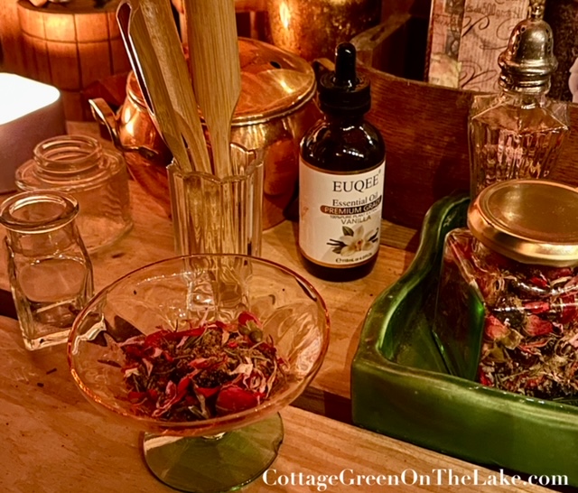 Since then, I’ve been stirring up all kinds of mixtures and potpourris made from dried rosebuds, daisy petals, lavender, vanilla, jasmine, and other fragrant flowers and scents.