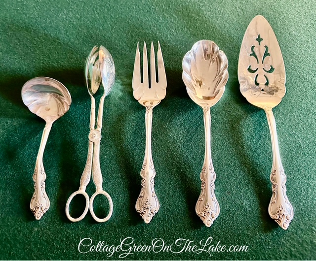 We found a beautiful sterling silverware set which included this 5-piece Hostess set and…