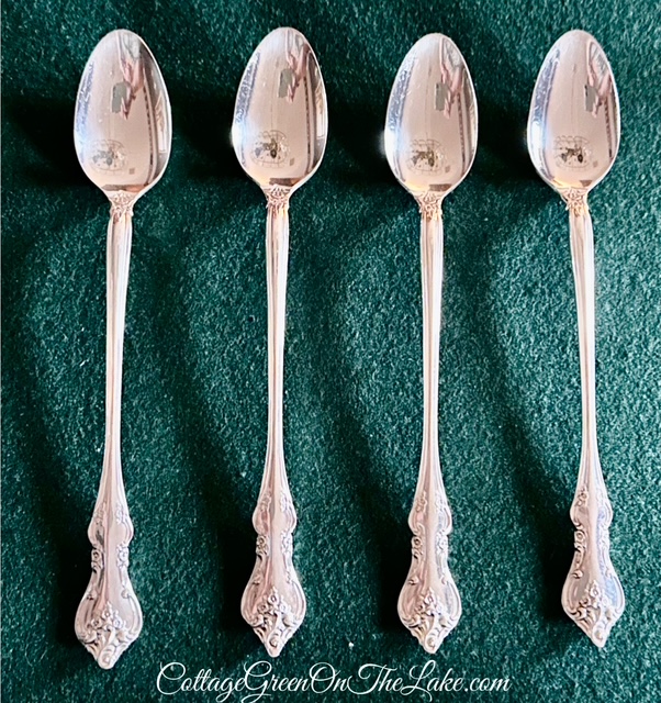 this entire, 4 pc. place setting, service for 8, sterling silverware set. All of the 32 pieces of silverware, plus the 5-piece Hostess set (pictured above) …8 dessert spoons…and the 4 teaspoons (pictured above) were included in the cost.