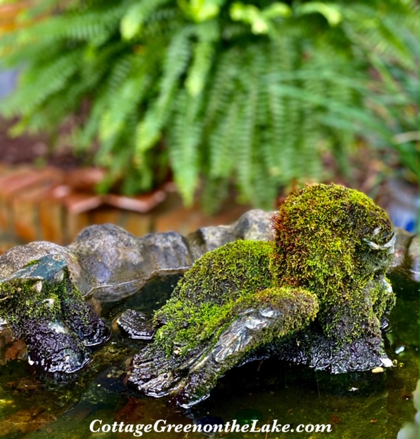 Moss covered anything makes me a little dreamy and after I wrote the post showing our moss covered pathway and this sweet moss covered cherub in our birdbath, I had so many comments and questions asking how I get my moss to grow, I thought I’d write about it.
