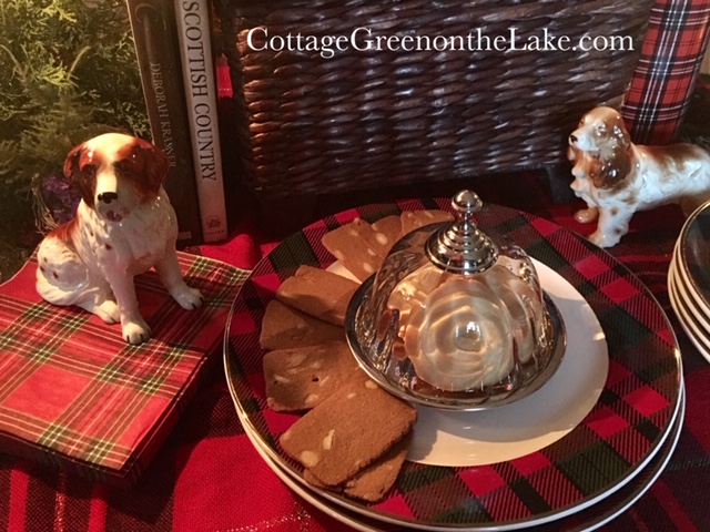 And another teatime treat, Almond Thins, circle a cheery plate rimmed in plaid.