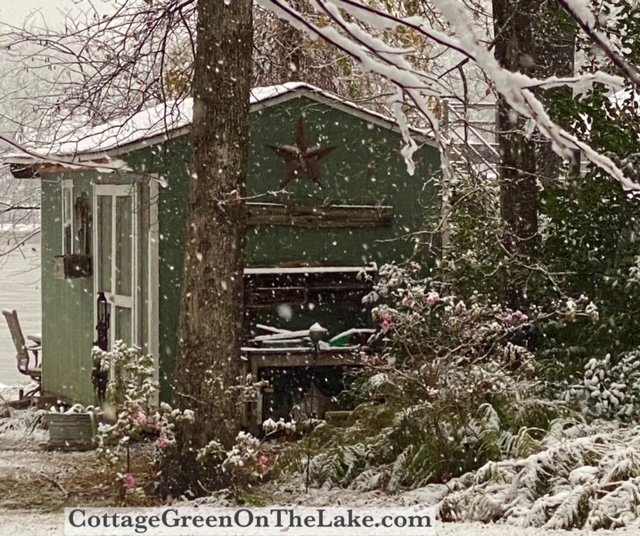 Look how enchanting my Potting Cottage looks in the snow!