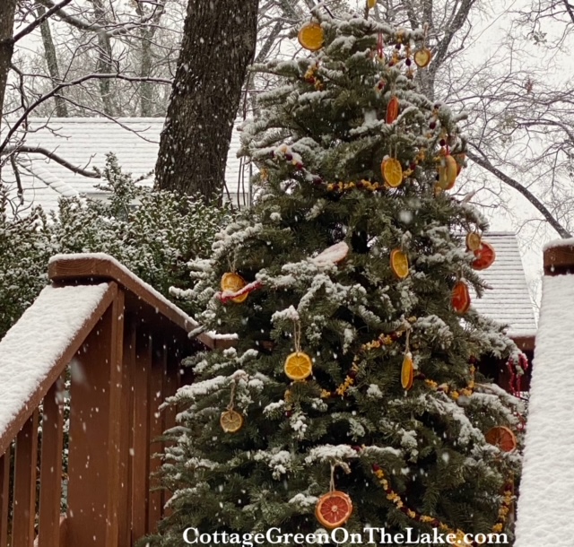 Everything for the next day was done; the fruit ornaments and festoons of popcorn strands were hung. A winter feast awaited my feathered friends and the only thing needed was the predicted and unaccustomed snow for our area in East Texas.